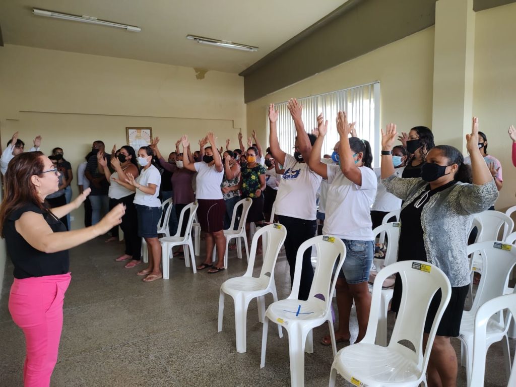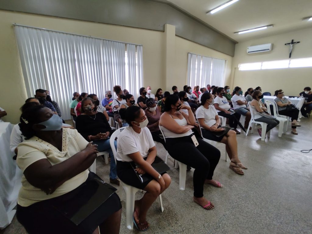 A capacitação para o voluntariado contou com três momentos. Na primeira parte, a coordenadora geral do Setor Psicossocial, Keila Aguiar, realizou a acolhida e um momento de relaxamento com as participantes.