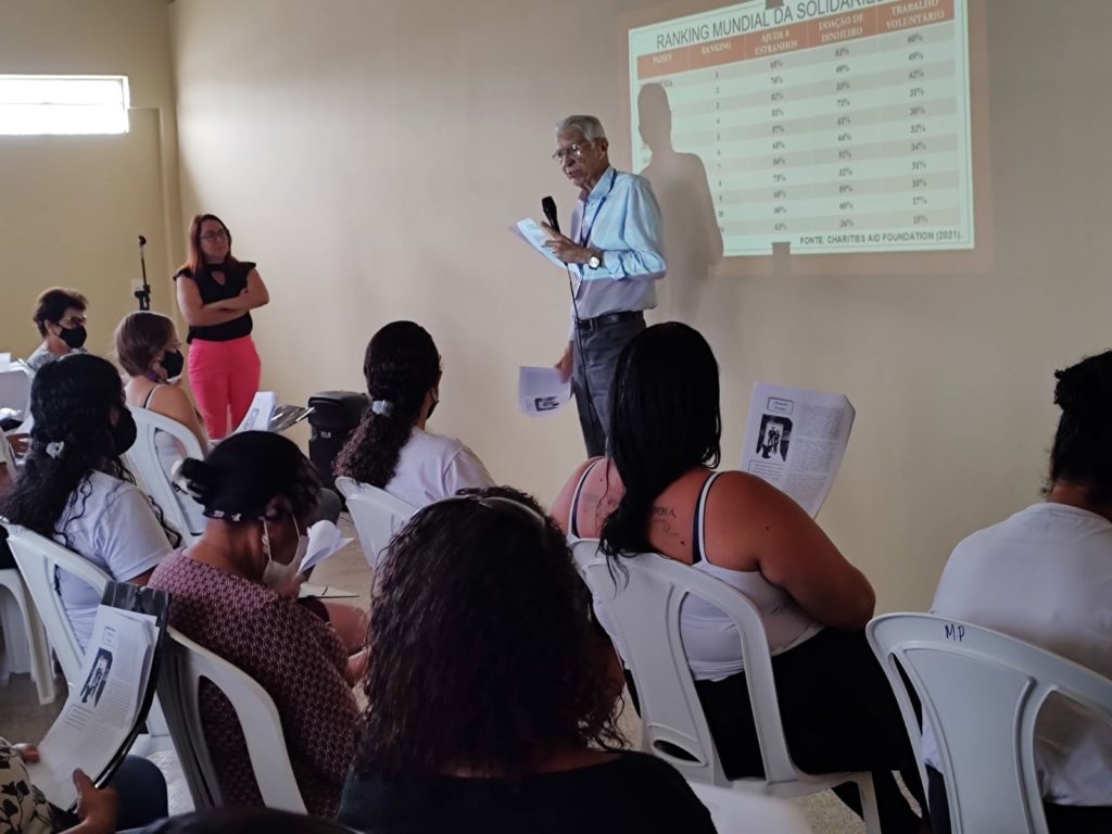 Em seguida, o diretor-presidente do Pró-Criança, Paulo Barbosa, ministrou a palestra sobre o trabalho voluntário no Brasil e no mundo. Doutor Paulo fez um apanhado geral da história da ONG, da criação da Rede Pernambuco Voluntário, em 2010, e das capacitações que em quase sete anos formou 1.411 pessoas.