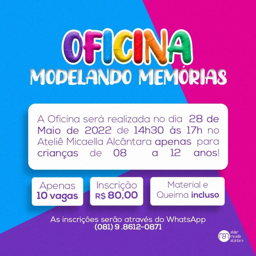 De acordo com a artista Micaella Alcântara, a oficina “Modelando Memórias” tem o objetivo de propiciar às crianças a criação de formas, potencializando habilidades importantes para a construção de ideias, emoções e sensações através da argila. A partir dessa vivência, segundo ela, busca-se reunir elementos naturais para compor um jogo da memória.