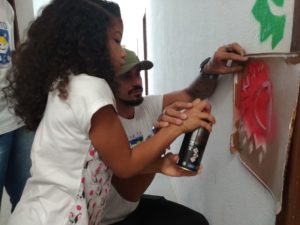“Foi uma intervenção lúdica com uma oficina de artes aliando a grafitagem com alegria, interação e amor”, afirmou a gestora da Unidade Coelhos, Júlia Zidanes.