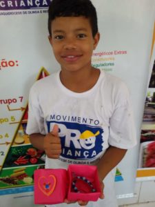 Os acessórios serão entregues como presentes às mães dos educandos em caixas personalizadas. Na produção dos objetos com papel color set, os beneficiários trabalharam o desenho, a colagem e a aplicação de tinta bidimensional.