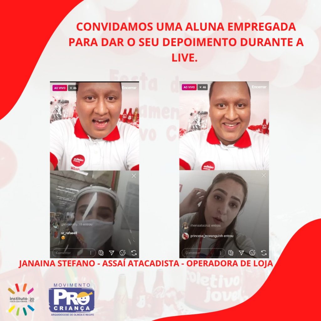 A primeira formatura 100% on-line do Pró-Criança foi acompanhada ao vivo por 300 pessoas entre alunos e jovens que pretendem se matricular no Coletivo. Durante a festa comandada pelo educador social Maykson Assunção também foram sorteados brindes.